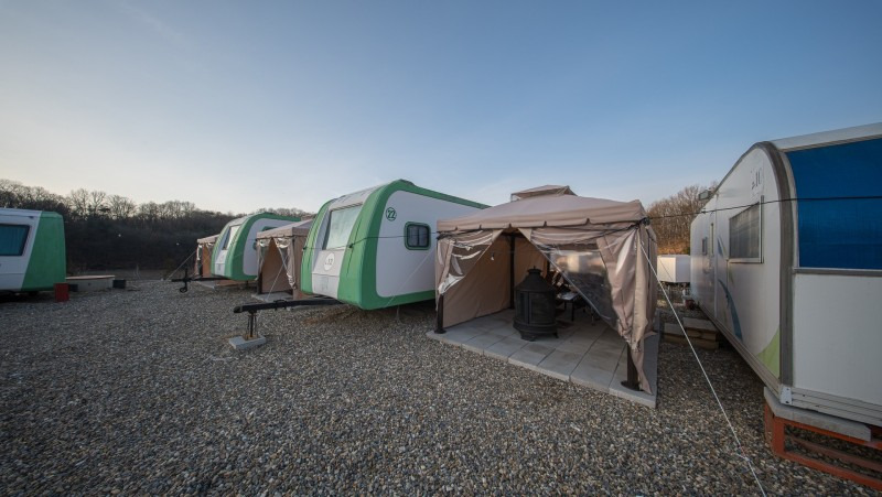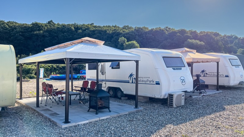 입실/퇴실 시간: 캠핑은 입실 14:00, 퇴실 12:00, 카라반은 입실 15:00, 퇴실 11:00