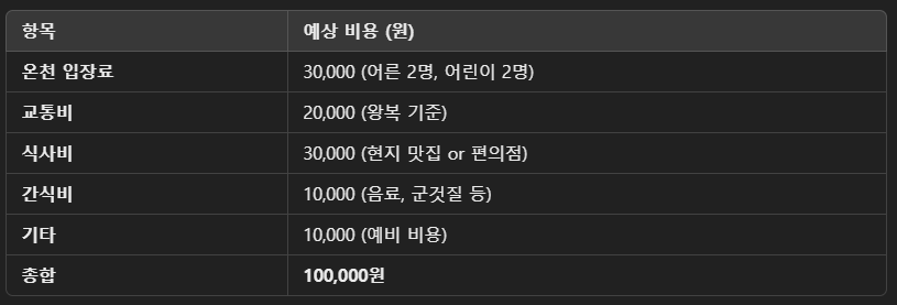 온천 여행은 몸도 마음도 따뜻해지고, 가족들과 특별한 추억을 만들 수 있는 최고의 힐링 시간이랍니다. 단돈 10만 원으로 부담 없이 떠나보세요! 🛁✨
