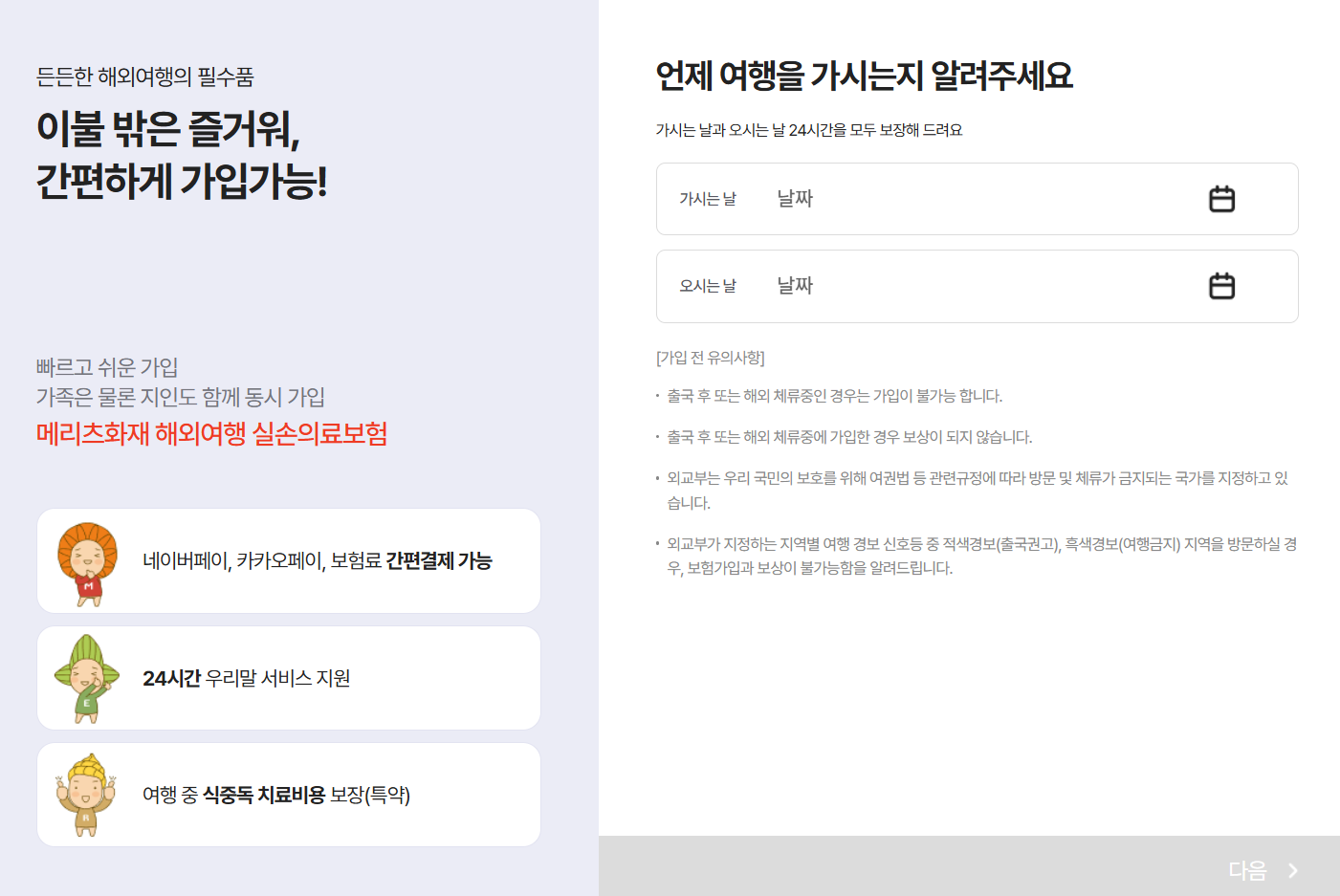 미리 가입 못했다면 인천공항에서 바로 가입하는 것도 가능하니 인천공항 삼성화재 보험가입데스크를 찾아보세요. 지금 바로 아래 링크로 자세한 혜택과 보험료를 계산해보세요.
