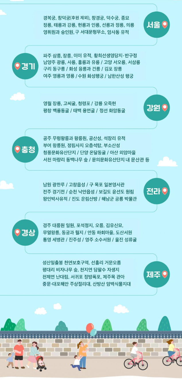 국가유산청 출범을 맞아 전국 국가유산들의 무료개방과 연계행사를 통해 국민들이 궁궐과 능묘, 아름다운 자연유산, 그리고 역사를 담은 유적지까지 각지의 다양한 국가유산 현장을 찾아 가족, 친구, 연인과 함께 잊지 못할 추억을 만드는 시간을 만들어보시길 바랍니다.