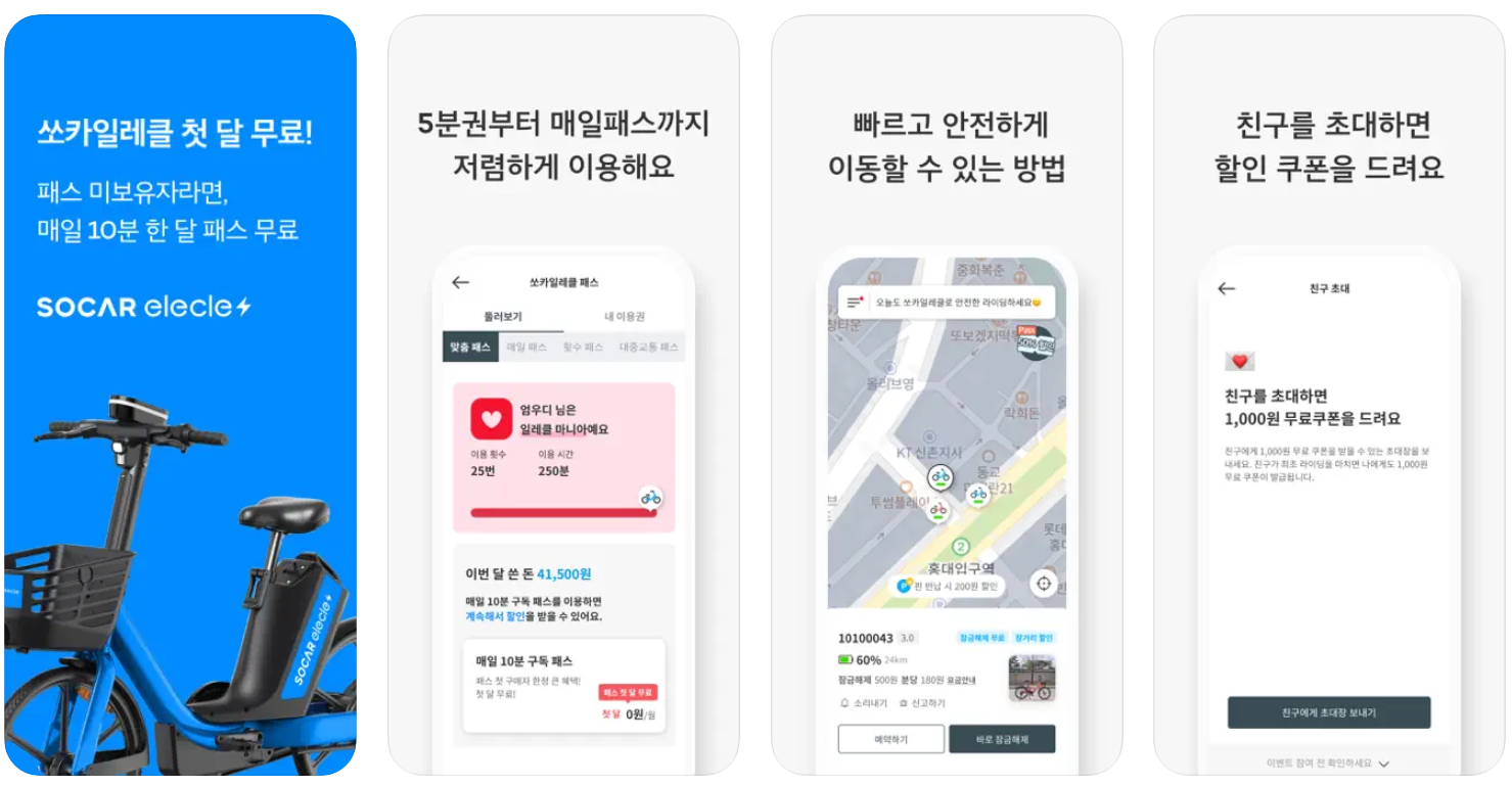 쏘카 일레클 공유 전기 자전거 렌탈/대여 요금