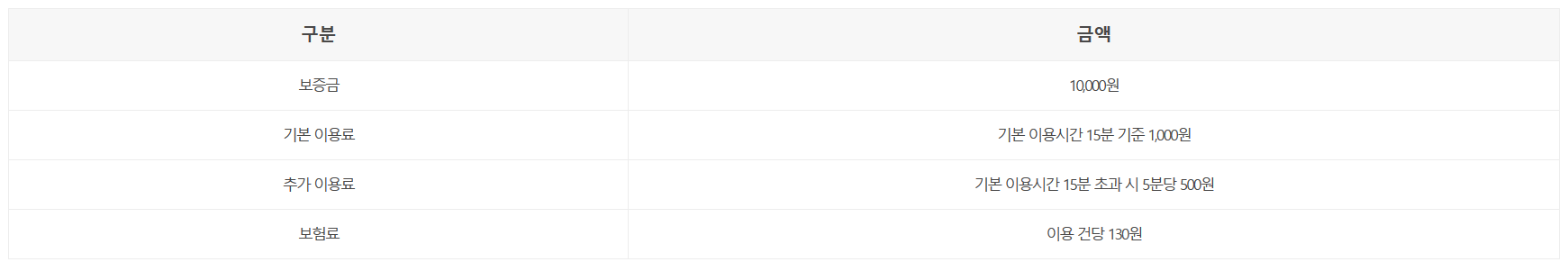 대부분의 경우 카카오 T 바이크는 대여 시간에 따라 요금이 부과됩니다. 기본 이용시간 15분 기준 1,000원이며, 15분을 초과로 이용할 경우 5분당 500원의 추가 이용료가 발생합니다. 예를들어, 20분을 이용했다면 카카오 T 바이크의 사용요금은 (15분 1,000원 + 5분 500원) 1,500원이 되겠죠? 이용이 끝나면 바이크를 반납하기 전까지 요금이 계속해서 쌓일 수 있으니, 이 점을 유의해야 합니다. 카카오 T 바이크는 보증금을 예치하여야 이용할 수 있습니다. 이용료를 제대로 납부하지 않거나, 사용시 고장을 내는 등 손해를 입힌다면 보증금을 반환받지 못할 수도 있으니 주의가 필요합니다.